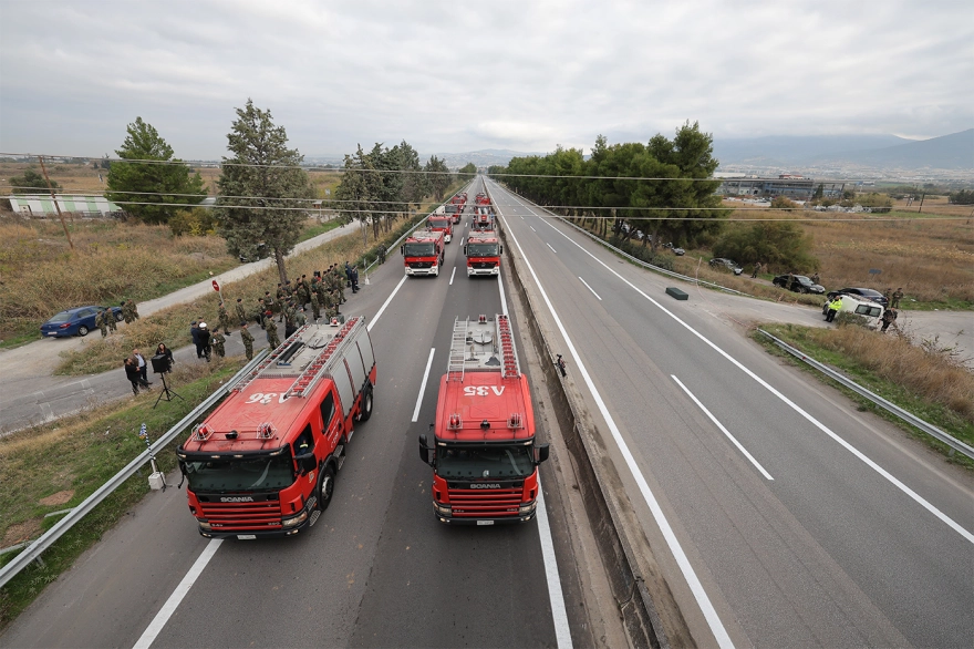 Άρματα μάχης και οχήματα του Ελληνικού Στρατού, περιπολικά και μοτοσικλέτες της Ελληνικής Αστυνομίας καθώς και υδροφόρα οχήματα της Πυροσβεστικής, πήραν από νωρίς θέση και πραγματοποίησαν διελεύσεις σε άψογο σχηματισμό