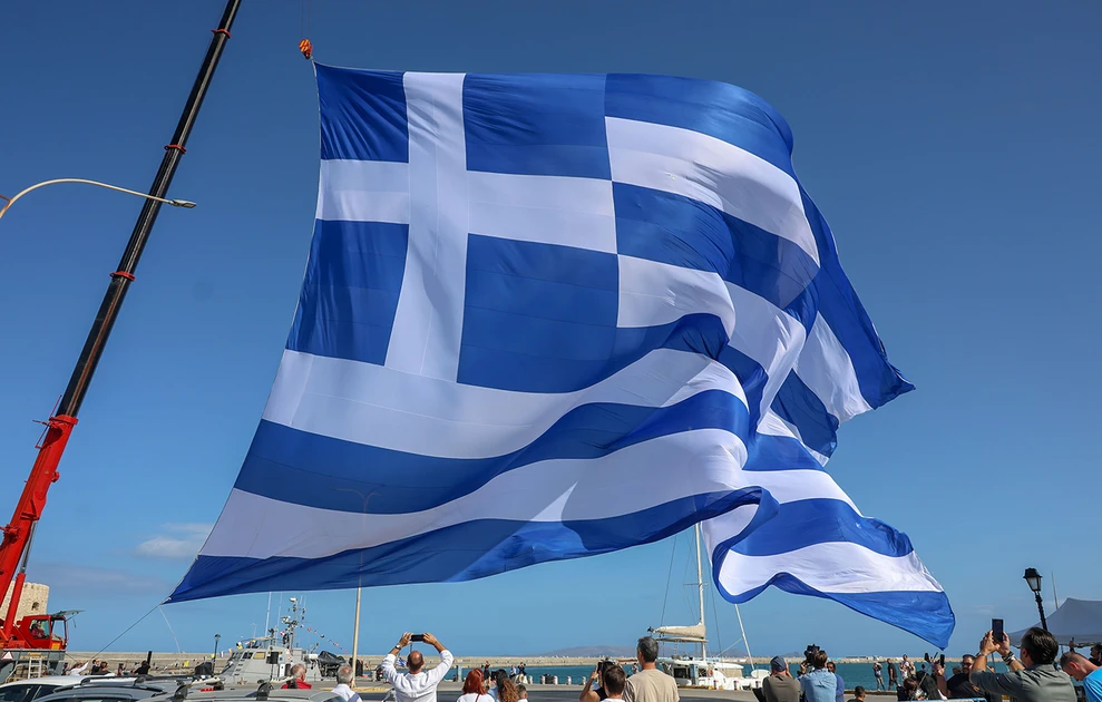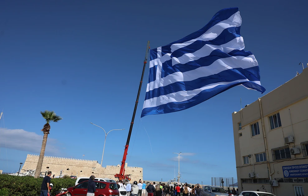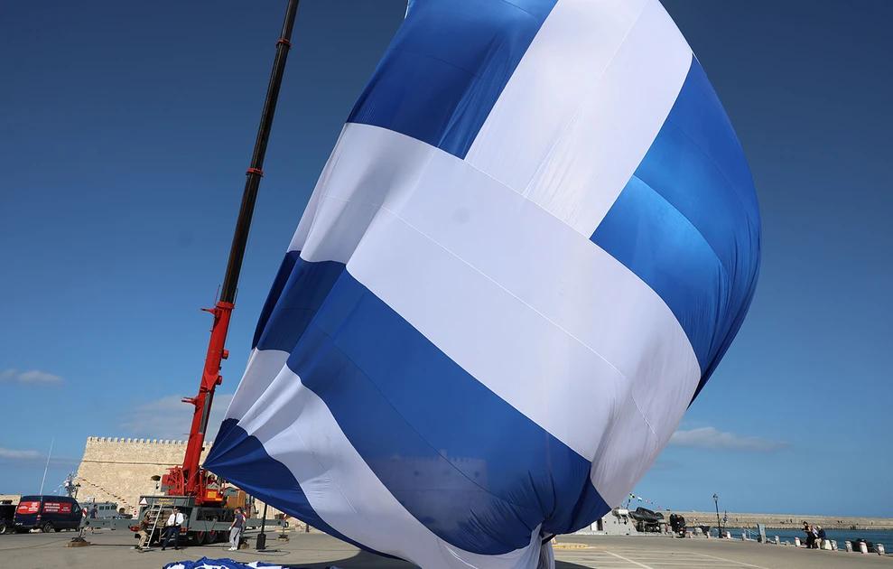 Ελληνική σημαία των 1.440 τετραγωνικών μέτρων υψώθηκε στο λιμάνι του Ηρακλείου