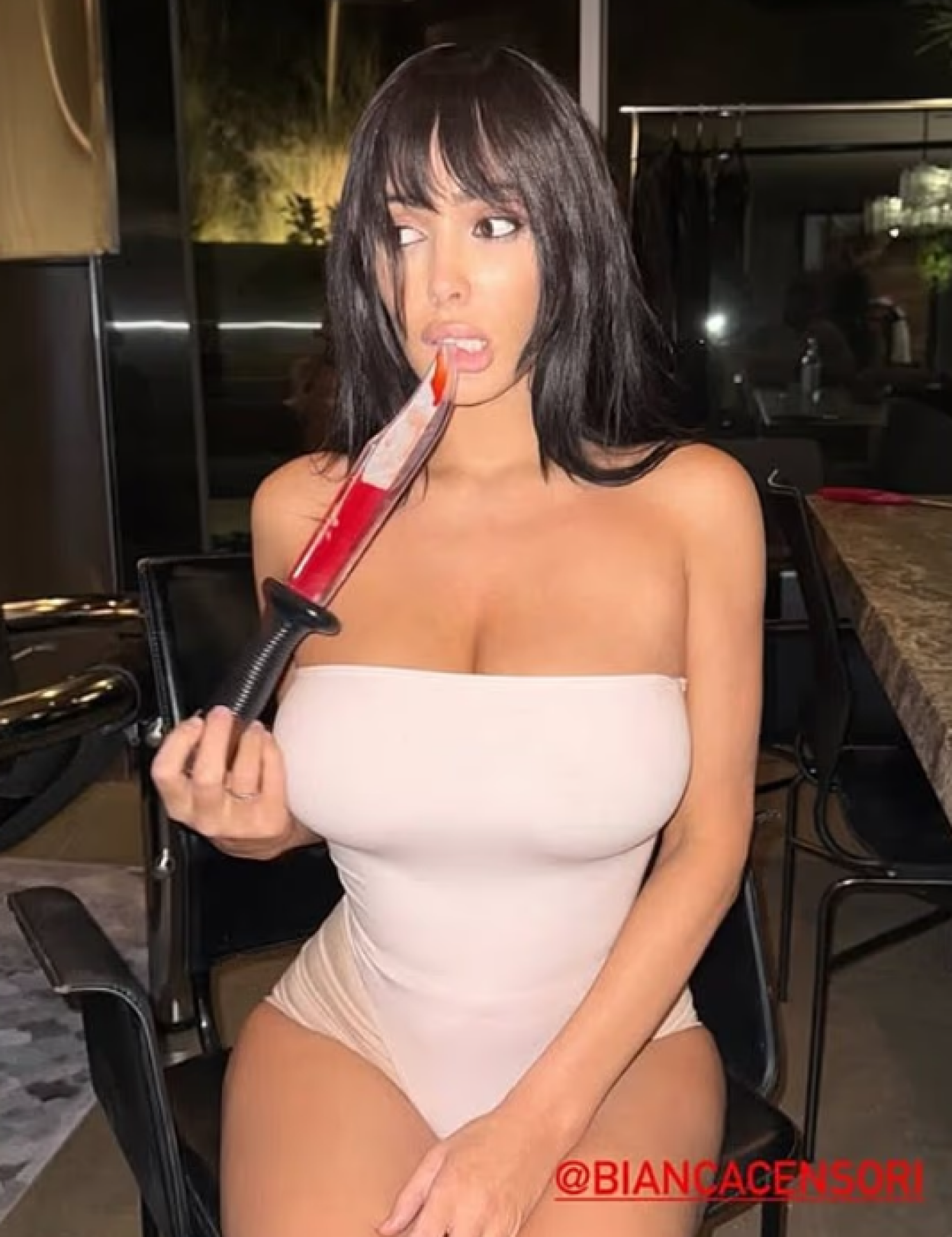 Η Μπιάνκα Σενσόρι κηρύσσει τον «πόλεμο» στην Κιμ Καρντάσιαν, λανσάρει δικά της εσώρουχα και ποζάρει με ματωμένο μαχαίρι