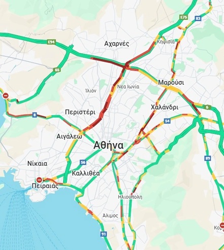 Με αργές ταχύτητες κινούνται τα οχήματα και στη Λεωφόρο Αθηνών, από Χαϊδάρι έως Σκαραμαγκά, ενώ στο Κέντρο καθυστερήσεις παρατηρούνται στη Βασιλέως Κωνσταντίνου.
