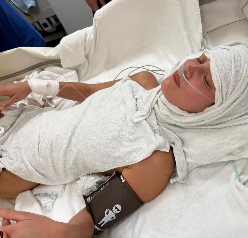 Τον Σεπτέμβριο η Μπέλα Χαντίντ μοιράστηκε συγκλονιστικές φωτογραφίες από το νοσοκομείο, με την ίδια να εμφανίζεται ταλαιπωρημένη, φορώντας ορό και έχοντας το κεφάλι της καλυμμένο με επίδεσμο.