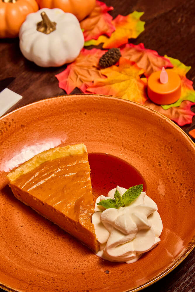 Η εμπειρία ολοκληρώνεται με την Pumpkin Pie (€8.95), το χαρακτηριστικό γλυκό του Thanksgiving, με αρωματική, κρεμώδη γέμιση και τραγανή βάση. Στο μενού περιλαμβάνεται και το Autumn Apple Fizz (€11.45), ένα seasonal cocktail με νότες μήλου και φθινοπωρινά αρώματα που ταιριάζουν ιδανικά με τα γιορτινά πιάτα.