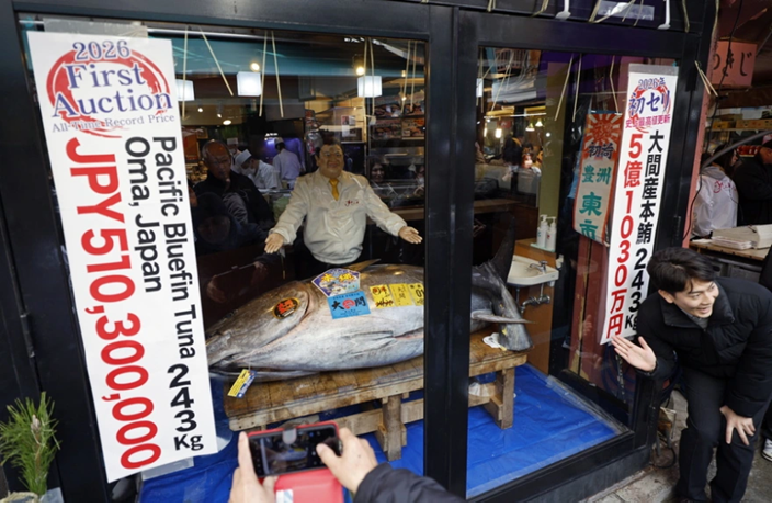 Ένας τόνος βάρους 243 κιλών πουλήθηκε έναντι 510 εκατ. γεν (περίπου 2,7 εκατ. ευρώ) στην πρώτη δημοπρασία του 2026 στην αγορά ψαριών Toyosu Fish Market στο Τόκιο, καταγράφοντας νέο ρεκόρ.