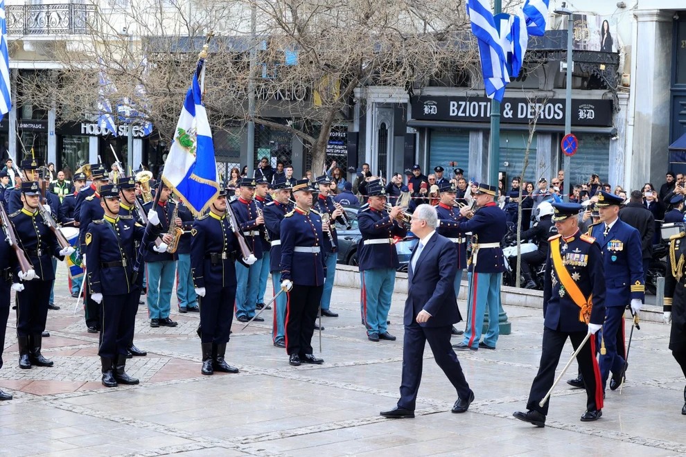 Οι εορταστικές εκδηλώσεις ξεκινούν επίσημα στις 10:01 με 21 χαιρετιστήριους κανονιοβολισμούς από τον Λυκαβηττό, ενώ στις 10:55 ο Πρόεδρος της Δημοκρατίας, Κωνσταντίνος Τασούλας, θα καταθέσει στεφάνι στο Μνημείο του Αγνώστου Στρατιώτη.